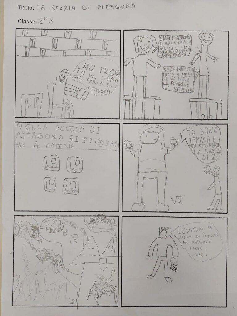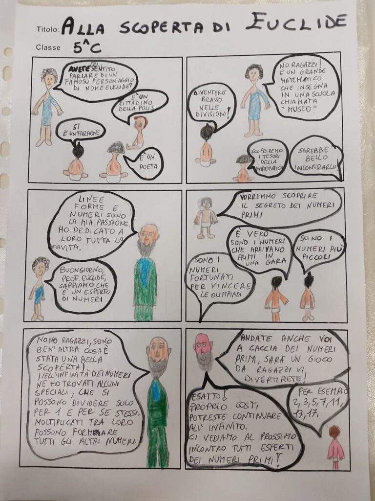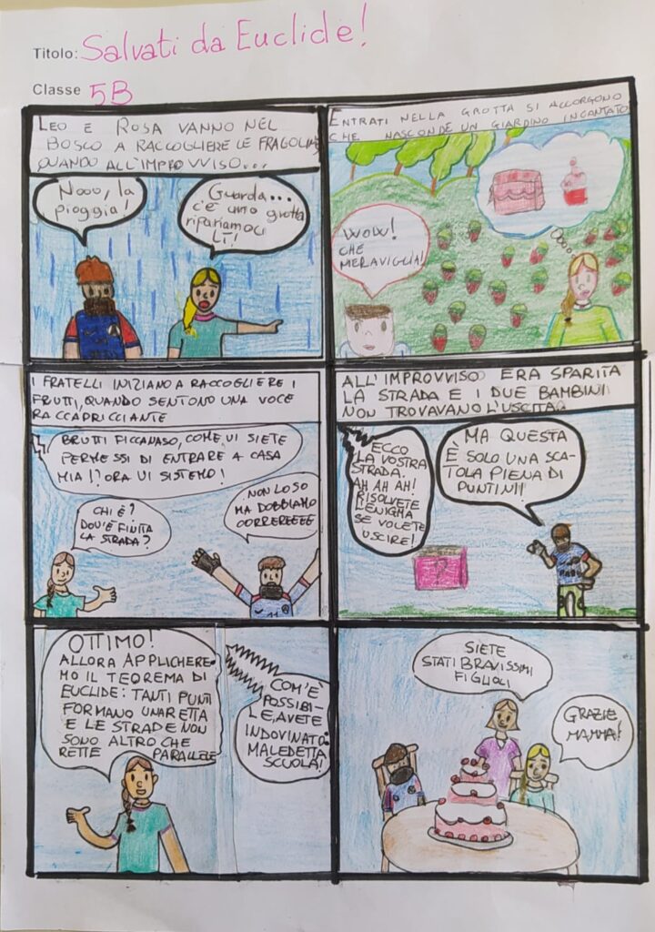 Altra bella novità di quest’anno, le classi si sono cimentate nella realizzazione di un fumetto a tema scegliendo dei matematici, le loro vite e teorie: Pitagora, Archimede, Leonardo, Euclide!