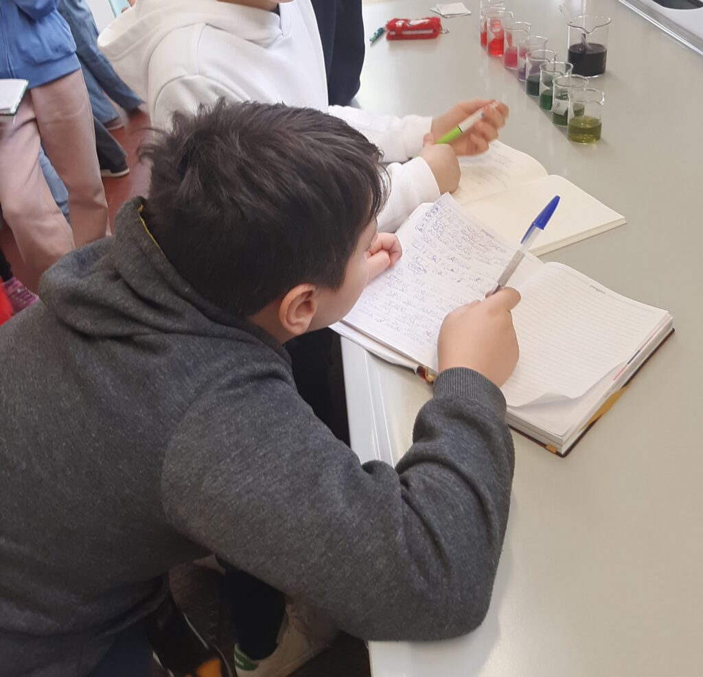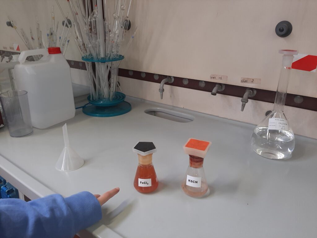 Dopo che abbiamo fatto merenda siamo andati in laboratorio dove abbiamo visto i Becher (dei bicchieri) che vengono usati per versare i liquidi.