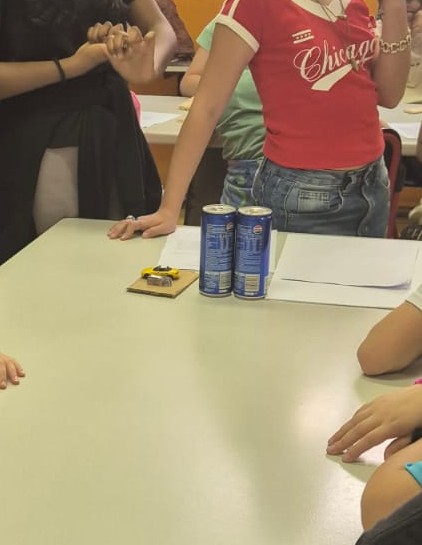 Con due lattine di pepsi abbiamo costruito un ponte di carta all’inizio, il foglio aperto non reggeva la macchina che abbiamo messo, ma il foglio ripegato come un ventaglio reggeva il peso della macchinina.