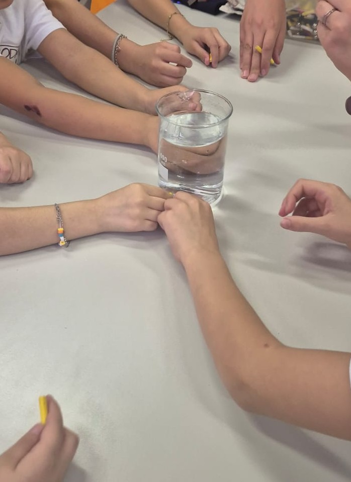 Con il magnete abbiamo recuperato una forcina all’interno di un becher pieno d’acqua dimostrando che la forza magnetica funziona attraverso il vetro e l’acqua, e anche mettendo in mezzo un tovagliolo di carta.