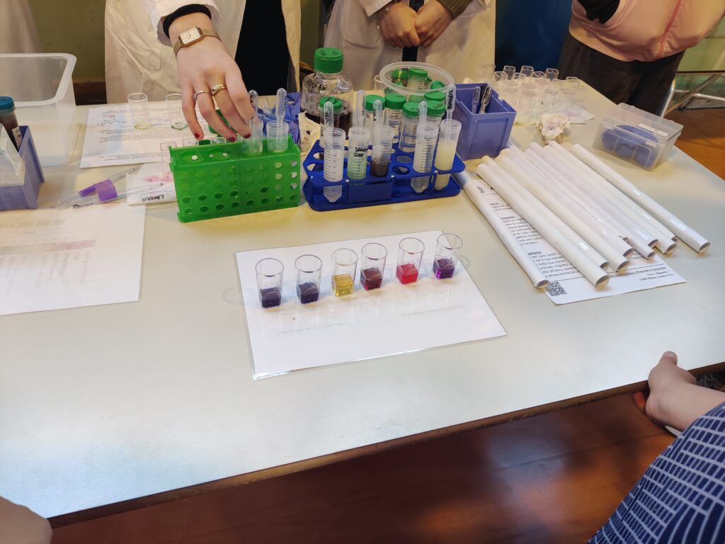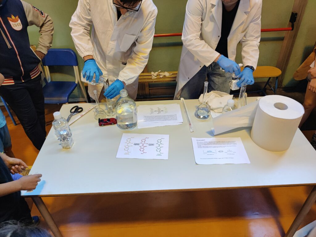 Due esperienze molto interessanti e colorate hanno permesso a tutti di scoprire come alcuni composta possono reagire cambiando colore se agitati.